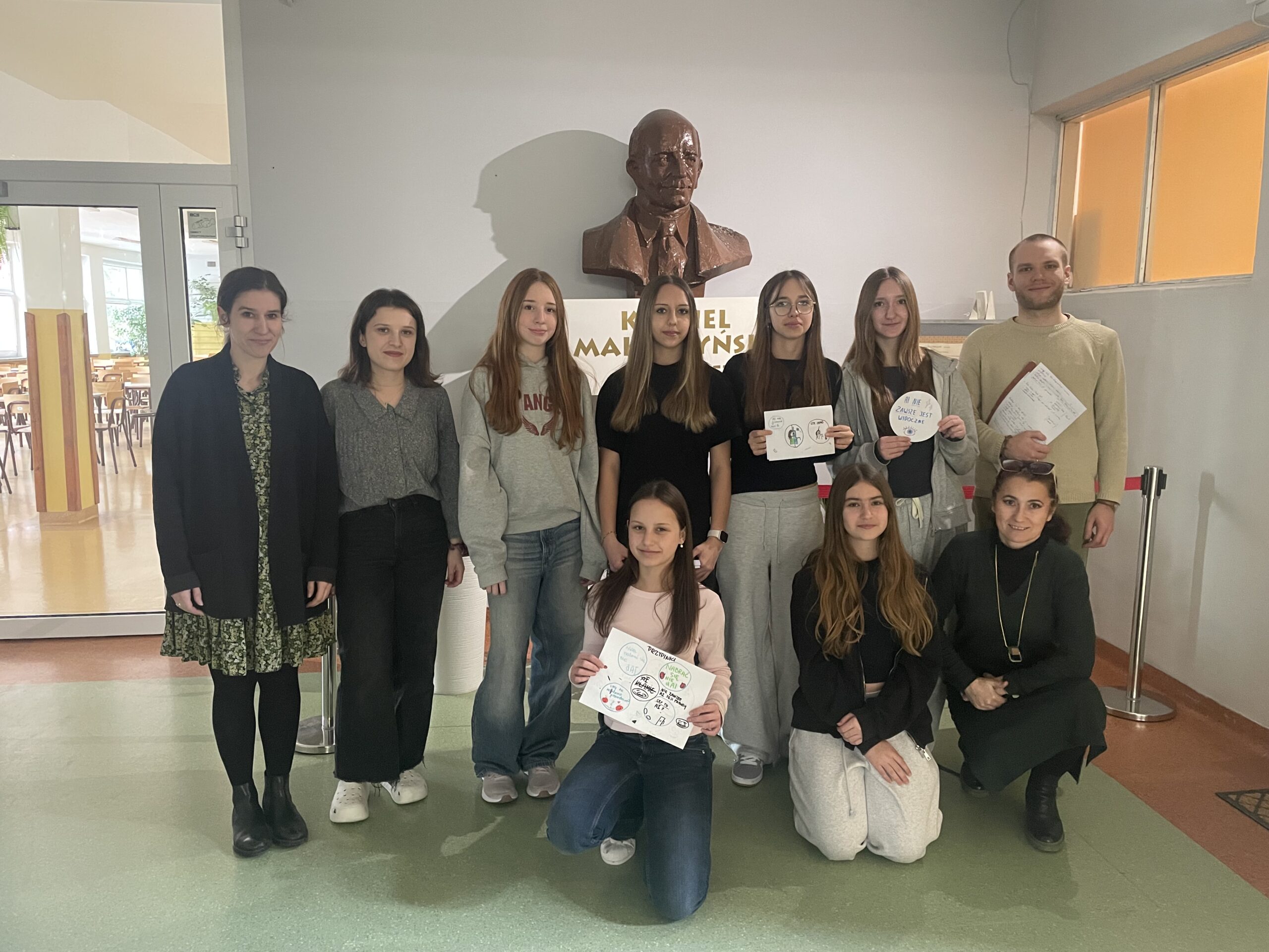 Uczennice miały szansę pracować w grupie oraz wspólnie stworzyć materiały do kolejnych działań profilaktycznych. Wspólna praca nad projektem przebiegała w swobodnej atmosferze, uczestniczki były w pełni zaangażowane w pracę, jednak znalazły również czas na wspólne zdjęcie przy pomniku patrona szkoły!