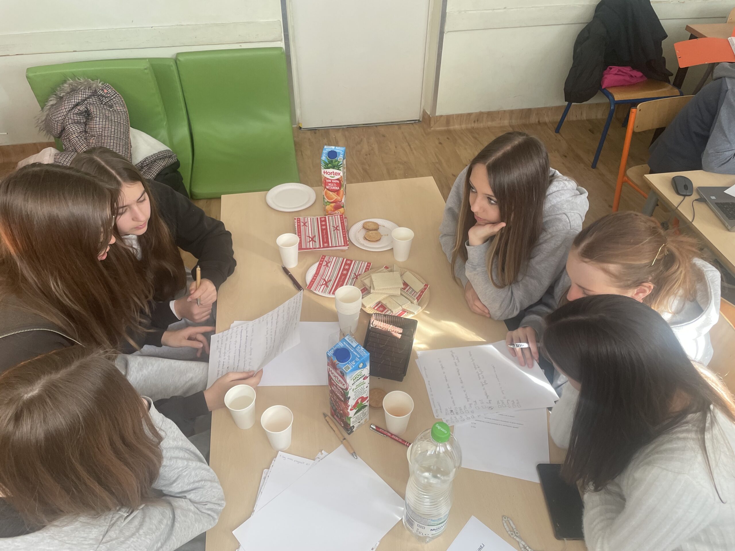 Podczas spotkania koordynatorki projektu z klasy 7a, wraz z uczennicami ze szkoły partnerskiej, tworzyły plan działań profilaktycznych obejmujących świadome i bezpieczne korzystanie z przestrzeni cyfrowej.